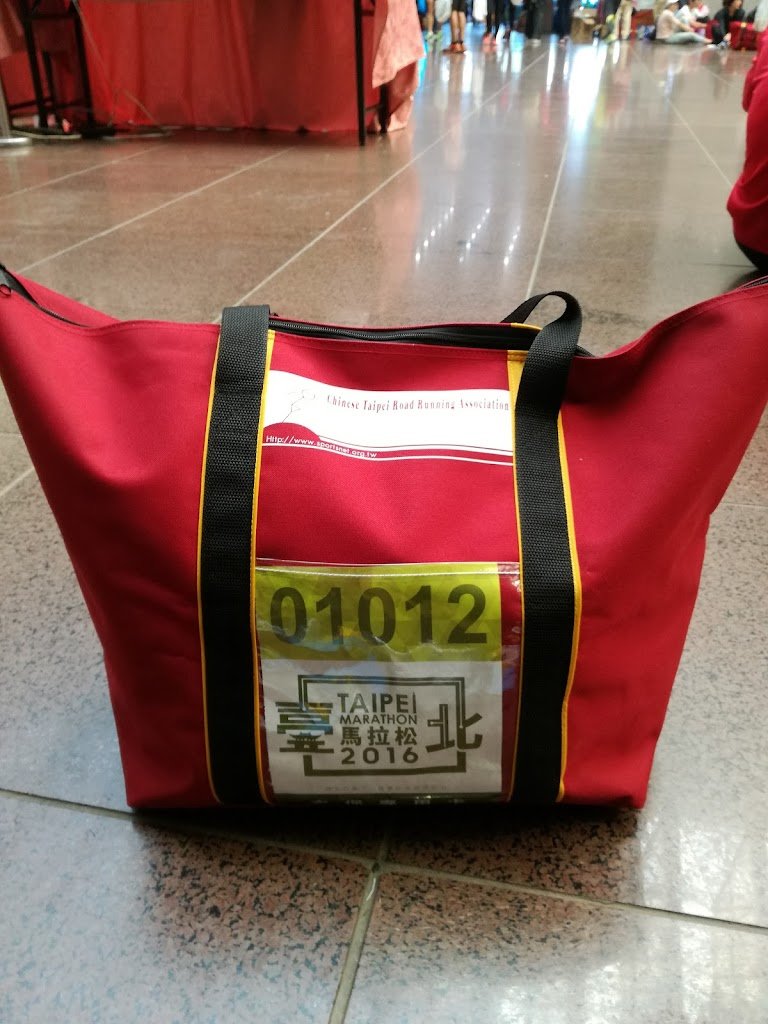 On race day, if you want to leave your change of clothes and other items at the event, you will need to buy a bag like the one above. They are sold at the registration area on the day before the race for 100 Taiwan dollars (about 360 yen). It can hold a lot. It probably holds about 30 liters. It seems to be a rule to leave your luggage in this bag at the races organized by the Chinese Taipei Road Running Associate.