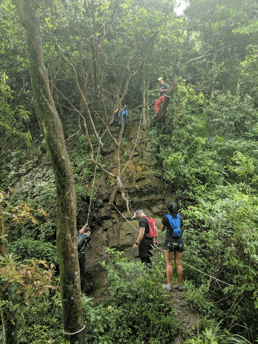 The climb looks like the picture above. This is just a small part of the climb, but there are many places where you can’t climb without a rope like this. Especially from 8km to 10km (CP.A) from the start point, there are many sections like this. I would describe it as climbing up the stone walls of Osaka Castle.