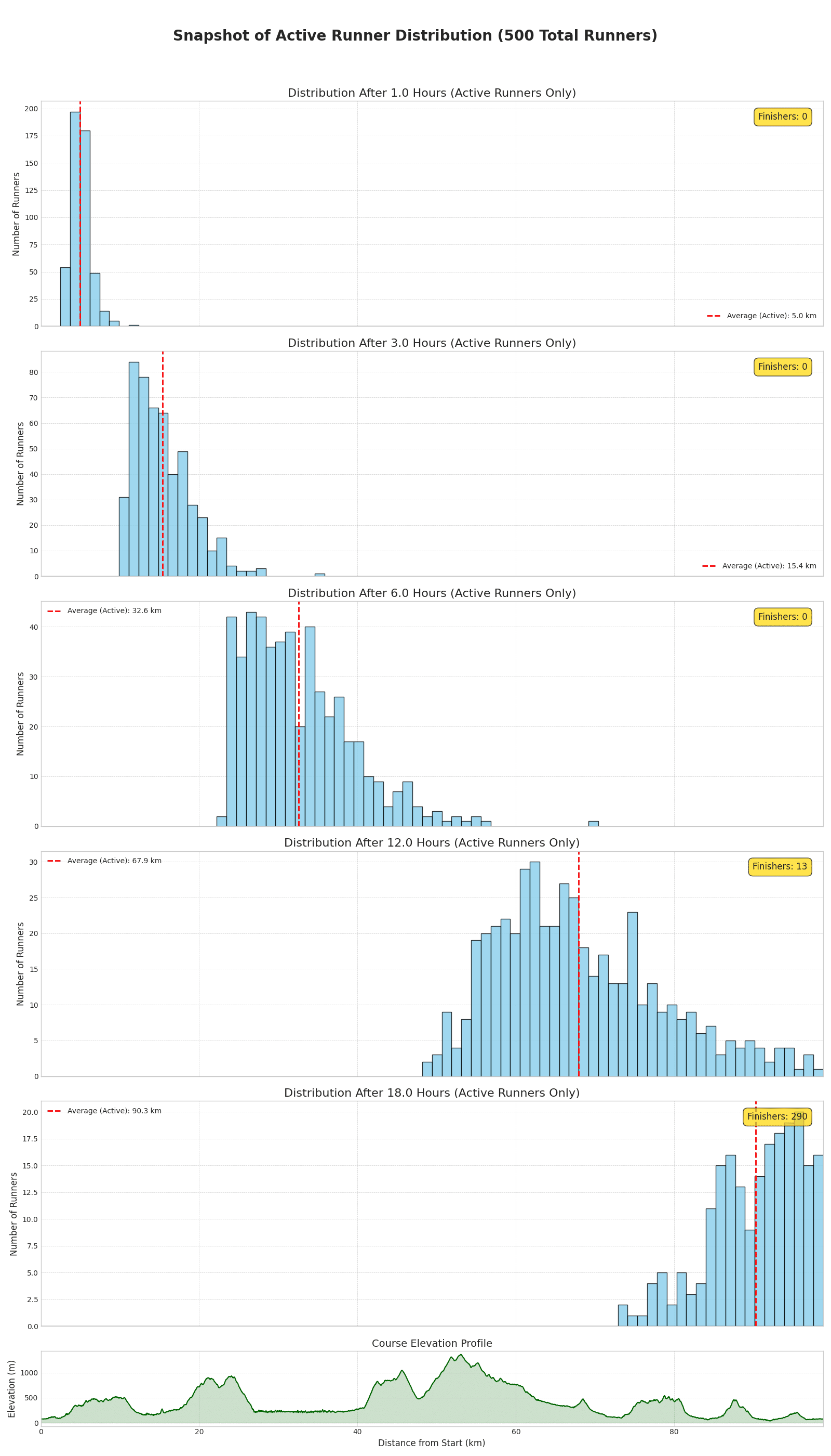- Runner dispersion analysis: where runners are distributed on course at specific times