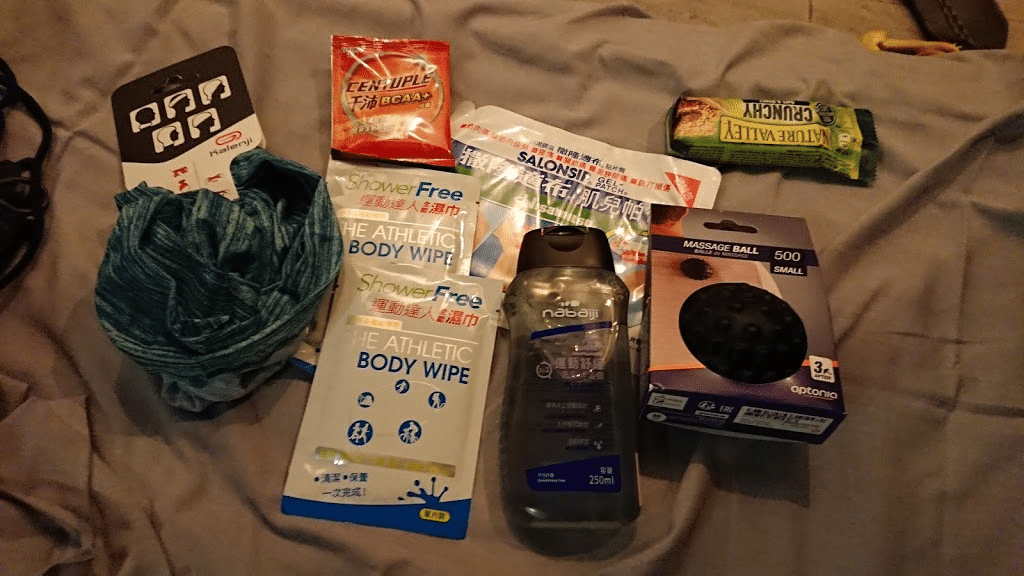 会場には、マラソン大会によくあるメーカーのブースがありました。大半がトライアスロンブランドだったのでよくわかりませんでした。トレラン関係なら、仏Decathlon(台湾名:迪卡儂)が出店しておりました。