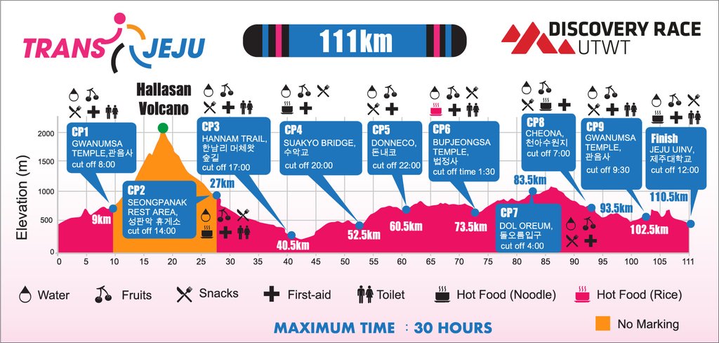 TransJejuは、韓国のチェジュ島で開催されるトレイルランニングレース。距離は111km、56km、10kmの3つです。韓国の最高峰である漢拏山(ハルラサン)をピークハントしつつ、漢拏山周辺のトレイルを走るレースです。オーガナイザーは、香港のAsia Sports Connectionで、香港のTransLantauを主催している。