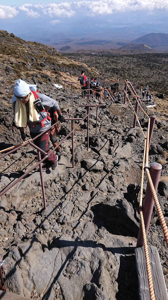 漢拏山は、ほぼ階段で登れるので、それほどキツくないです。レース前半ということもあるので、体力的にも余裕があったということもあったと思う。景色は最高でした。晴天ということもあり、山頂からチェジュ島全体が見渡せます。TransJejuの全行程における一番のスポットですね。ただ、下りは、土曜日ということもあったためか、ハイカーが沢山登ってくるので、あまり走れません。。。ほぼ階段とガレ場を繰り返す感じ。