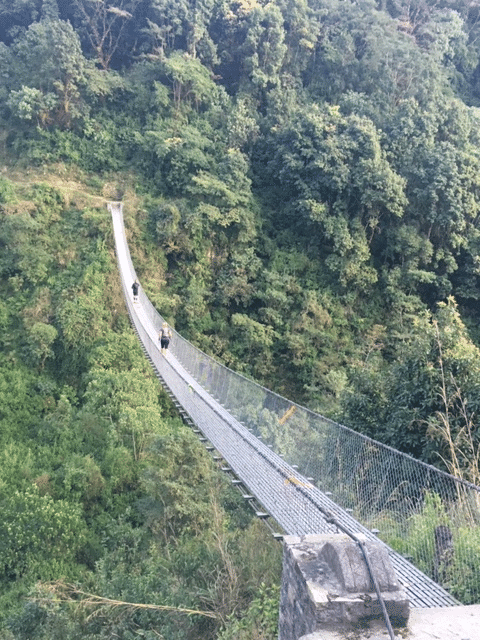 スタートから序盤はゆるいアップダウンの繰り返しで走れるトレイルが18Kほど続きます。所々小さな小川を横切ったり、村の中を通ったり、スリリングな吊り橋を渡ったりしました。吊り橋が苦手な私でしたが、ここは進まないと先には進めないので前だけを見て渡ります。