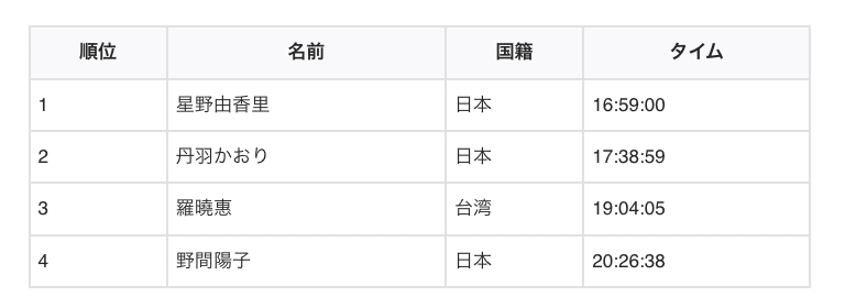 男子は1位以外は、全員日本人(1位は中国人)。1位の李俊峰(Li JunFeng)は、今年2018年のSTYで8位の選手です。女子は、星野由香里(1位)さん、丹羽かおり(2位)さんのワンツーフィニッシュ。女子優勝の星野さんは、今年3月に台湾の宜蘭で開催された棲蘭100林道越野でも優勝。