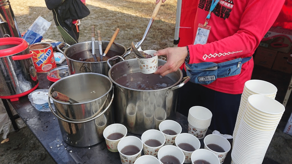 途中、日本人ランナーと遭遇したが、「顔、白いですよ、大丈夫ですか?」と心配された。あの時は、確かにあまり体調がよくないような感じだったかな。15km地点にあったエイドで温かい紅豆湯(餅の入っていないぜんざい)をいただいてから、身体がようやく目を覚まして始めたので、徐々にペースを上げられるようになった。