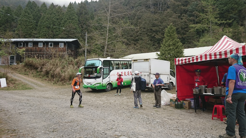CP3に到着後15分~20分ぐらい待機していたら、バンが来たのでそれに乗る。ゴールまでゆっくりできるわと思ってたら、なぜか82km地点(山屋)のエイドで降ろされる。このエイドには流暢な日本語が話せる台湾人が居たので、説明を聞くと「この車両で荷物運ぶから、降りてください」とのことでした・・・(笑)