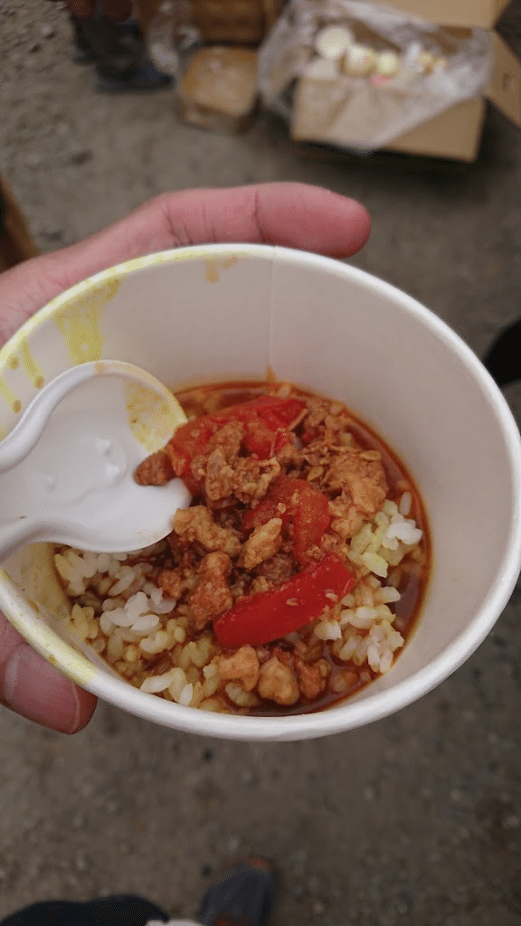 しかし、ここのエイドステーション、飯が充実していて、台湾料理のビーフンスープやトマトスープやら、台湾式カレーライスもあった。時間帯的にお昼過ぎだったんで、ランチとして頂きました。台湾式カレーは、少し酸味はあったものの、めっちゃうまかった。