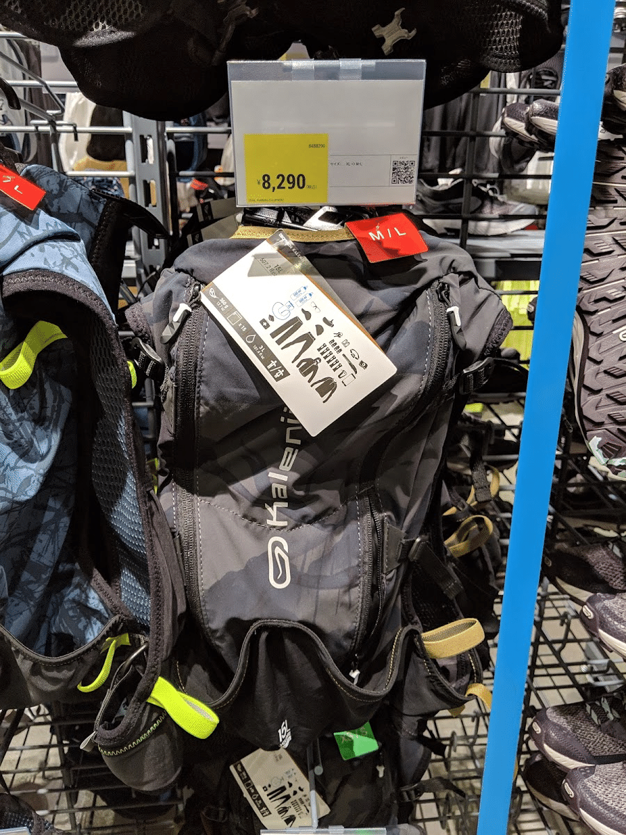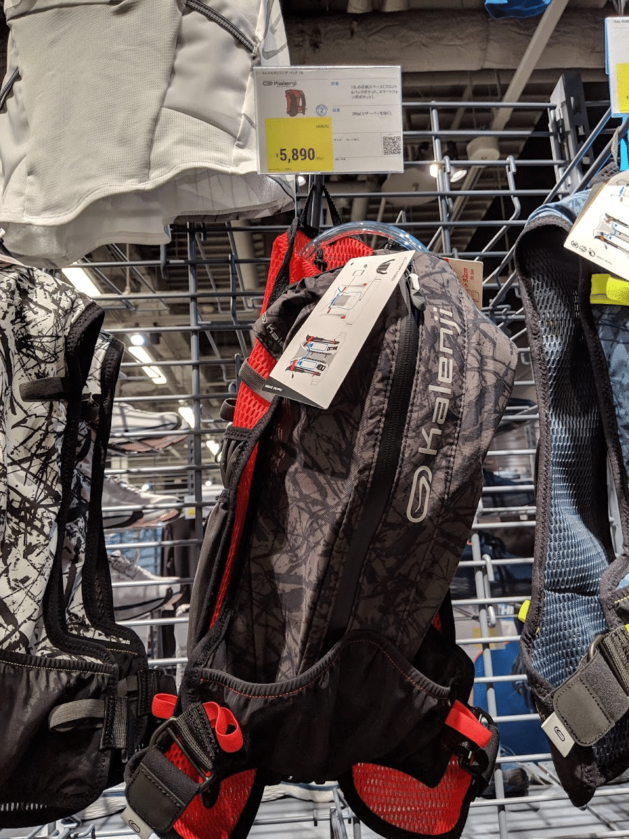 ただし、価格に関しては、台湾の店舗より少し高めな設定。昨年9月に台湾の高雄市内のデカトロンで購入したkalenji sac trail 10lは台湾だと約4500円であったが、日本だと5890円(税込み)という値付けだった。これに関しては、物価の差や税金などを考慮した価格なんだろうと思われる。なお、本国フランスでは35ユーロなので、およそ4360円です。