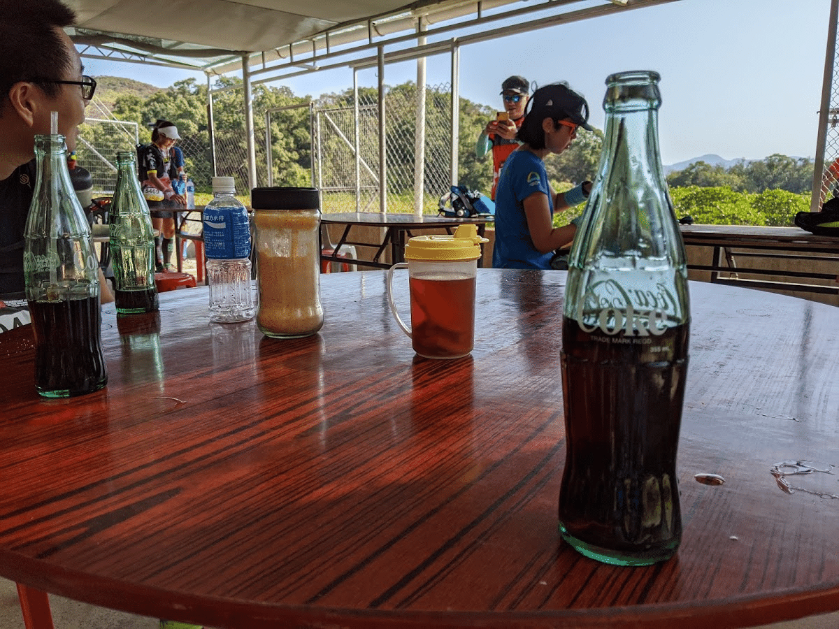 現金があれば、コーラや烏龍茶、スポーツドリンクが買えます。暑かったためか、皆さん、お店に入ってめっちゃ飲んでました。香港のレースは、コース上の売店、自販機での食料や水分の調達が許可されているレースが多いので、使わない手はないです。現金とオクトパスカード(Suicaみたいなプリペイドカード)をザックに忍ばせておくと便利。