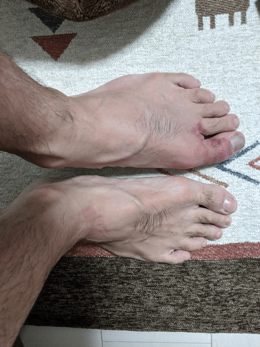 50kmのレースなら、Vibram FiveFingersのV-Trailでいけるやろという感じで望んだのだが、これは明らかに選択ミスだった。トレイルだと何が起こるかわからないということを改めて思い知らせられた。