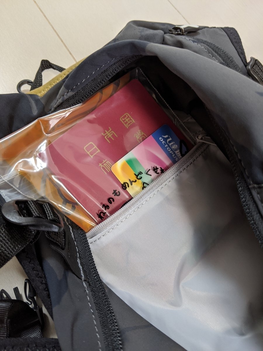 ULTRA 15Lの左側のフロントポケットには、スマホが入れられる。防水ではないですが、耐水性のある素材を使用しているとのことです。なので、ある程度なら水分や汗から守ってくれるが、ここは防水性能のあるスマホのほうが安心かなと。といっても、最近のiPhoneは防水化されているし、HuaweiやOppoなどの中国メーカーのスマホも防水化している機種もあるので、大丈夫じゃないですかね。