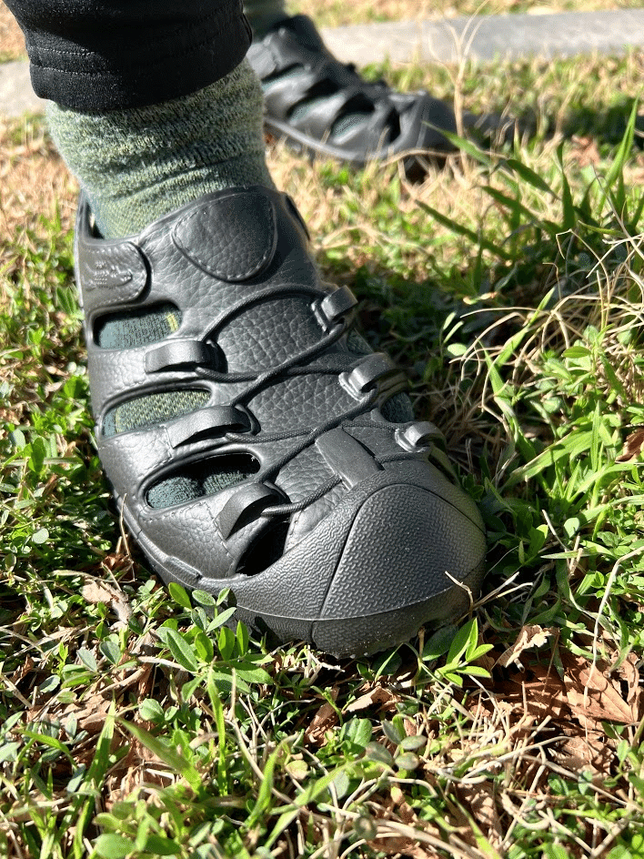 以前購入したのは Y 字の鼻緒が付いたサンダルタイプのものですが、今回購入したのはグルカサンダル風のものをチョイス。アッパーが付いていて、あとつま先のところがむき出しになっていないタイプです。なので、風貌としてはシューズよりのものになります。