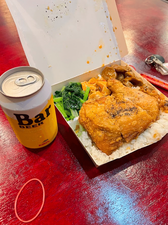 メインディッシュは、このお店の看板商品でもある排骨(パイクー)や三杯雞(サンベイジー)、炸雞(フライドチキン)などから選び、そして副菜は炒青菜(青菜の炒め)、麻婆豆腐などから選ぶスタイル。写真の弁当は炸雞で、はむ家のオーナーおすすめの一品で、ボリューム満点で美味かった。ご飯の量は、お茶碗2杯弱ぐらいある。