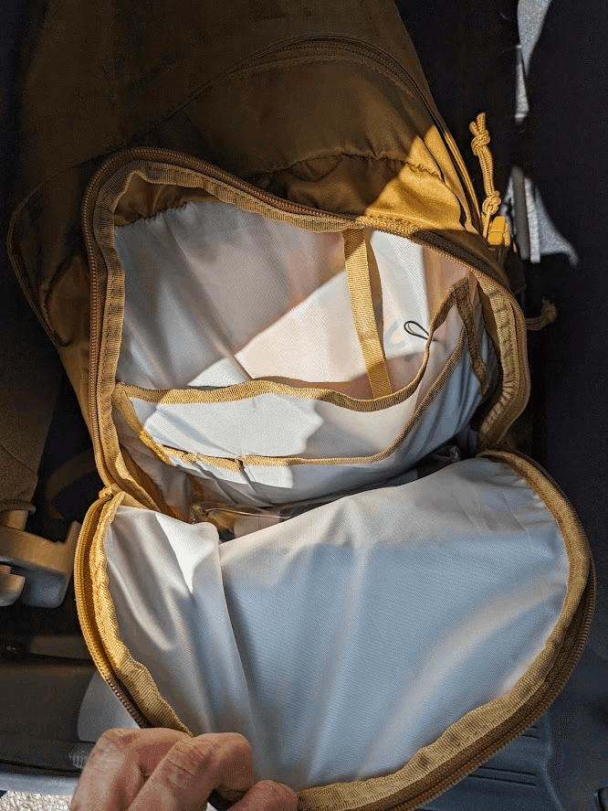 特にボトルホルダーはほしかった。いつもは、デカトロンの40Lのダッフルバッグを使うのだが、両サイドにボトルホルダーがないので、ペットボトルや折りたたみ傘といった縦長のものや、ちょっとしたものを一時的に入れておくには不便だったりする。他には、Cabin Zero 33であったり、パタゴニアのブラックホールバックパック32L も候補にあがったが、最終的には値段の安さでチョイス。定価7,980円だが、実売は5,500円ぐらいで購入可能。