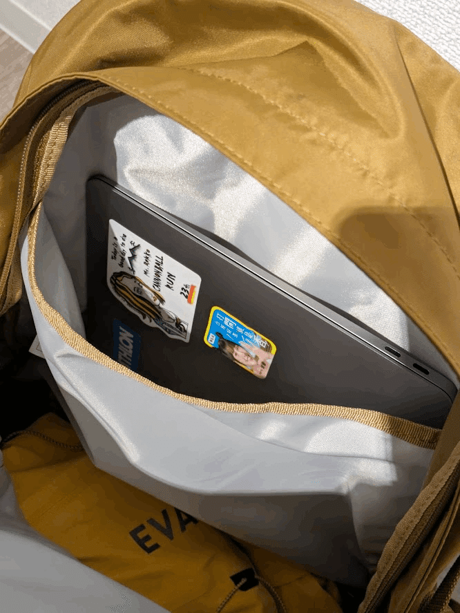 ウォーカー33 のメインコンパートメントには、ラップトップ PC を収納するポケットが付属しているが、これはホンマにおまけ程度。ペラペラで保護する機能は皆無と言っていいだろう。